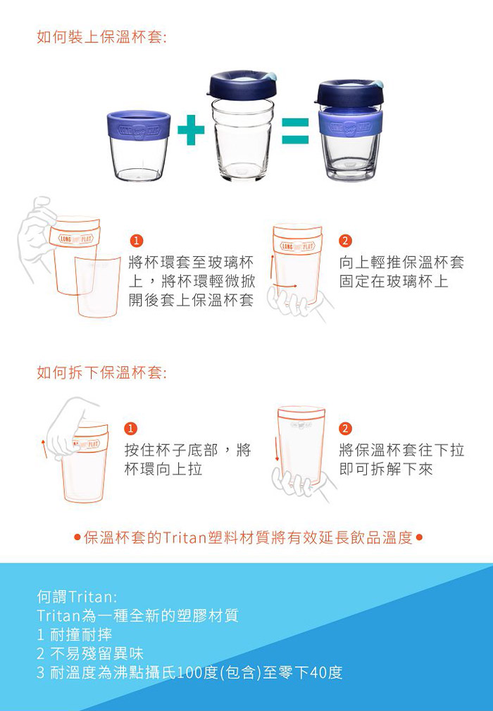 材質:內杯-強化鈉鈣玻璃、外杯-Tritan、蓋子-聚丙烯、扣-聚乙烯、杯環-矽膠
