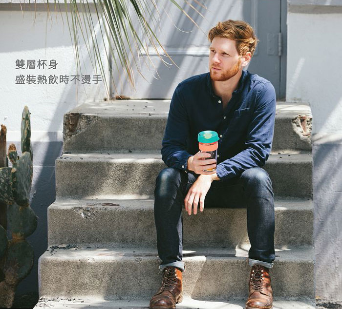造型時尚的雙層隔熱杯,不怕燙手,內層強化玻璃,外層Tritan隔熱杯,