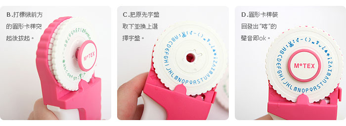 內容:列印專用膠帶 x 1、專用字盤 x 2、打標機 x 1