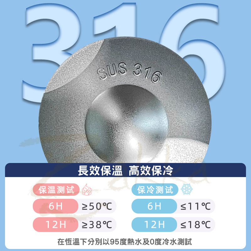 杯身採304不鏽鋼,內膽採316不鏽鋼製成,食品級高品質使用更安心!