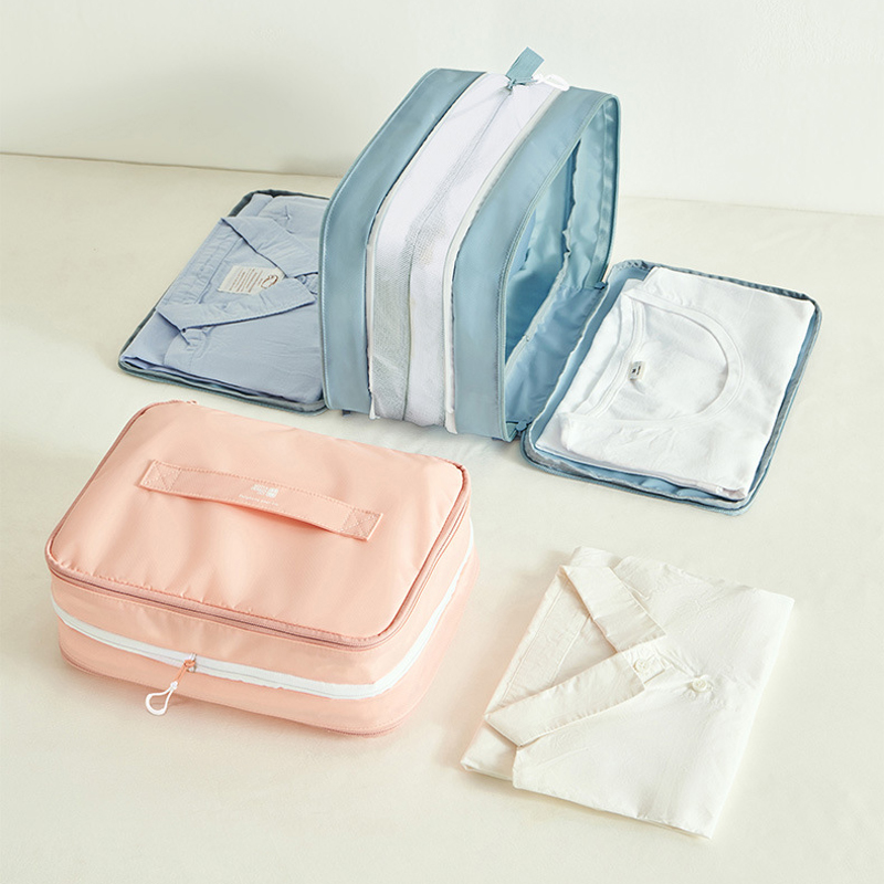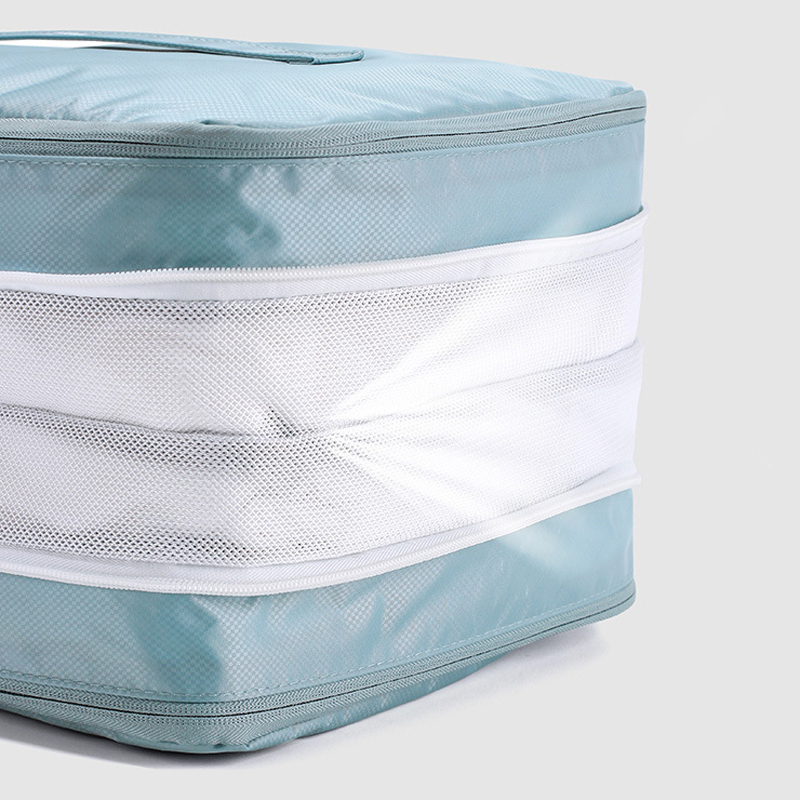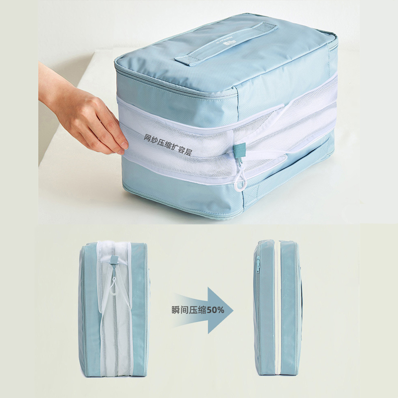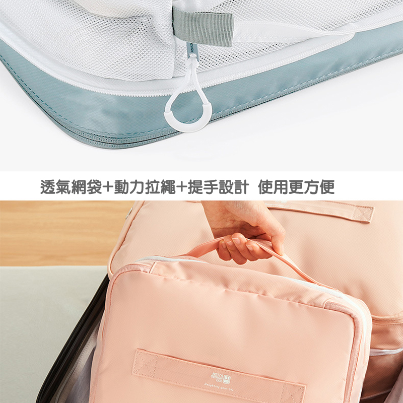 側邊雙層壓縮拉鍊設計,一拉即縮,立即減半厚度!